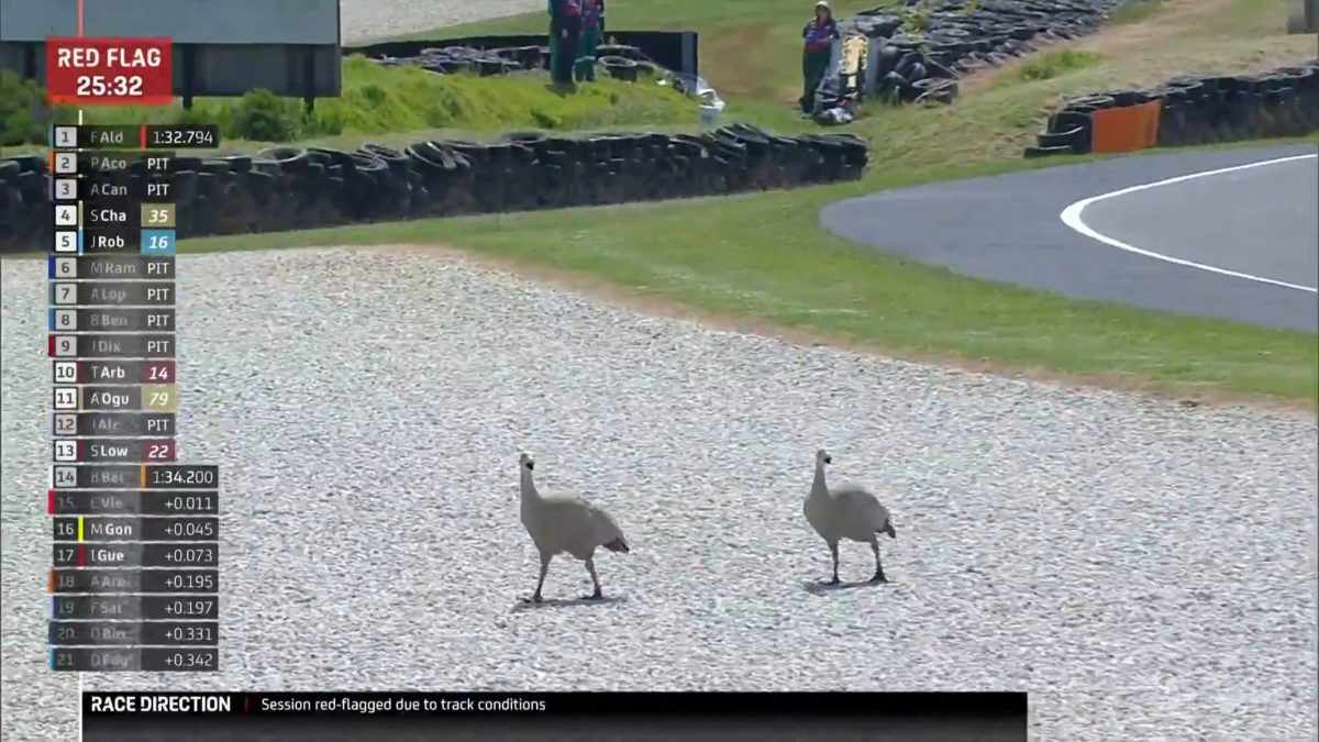 Moto2’s second practice session at Phillip Island was red-flagged when the Cape Barren Geese made an on-track appearance.