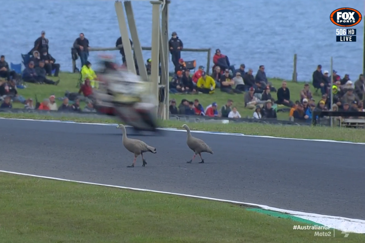 The Red flag is the second of the weekend for geese, while wallabies have been seen bounding across the track at least twice too.
