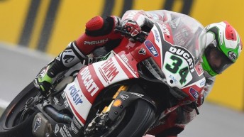 The Ducati rider pipped PATA Honda’s Leon Haslam to pole despite a fall in the closing stages at the British circuit. Treacherous wet conditions tested the field to the limit with several riders suffering falls.