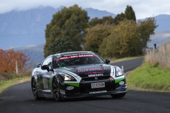 Glenney (Nissan GT-R) managed to hold off a concerted late charge by Jason White (Mitsubishi Evo 9) who managed to take 15s off the leader on the 32km Rinadeena stage.