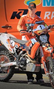 Multiple winner Ben Grabham aboard his X98 KTM has made it to Finke for the overnight stop as the fastest bike in the gruelling two-day 2011 Tattersall’s Finke Desert Race.