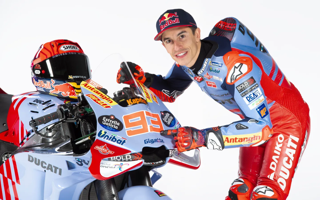 Despite Red Bull having left the factory Honda team, and title sponsor Repsol reportedly negotiating a reduction in its financial commitment due to Marquez’s escape, the Gresini Ducatis have been unveiled with a similar livery to recent years.