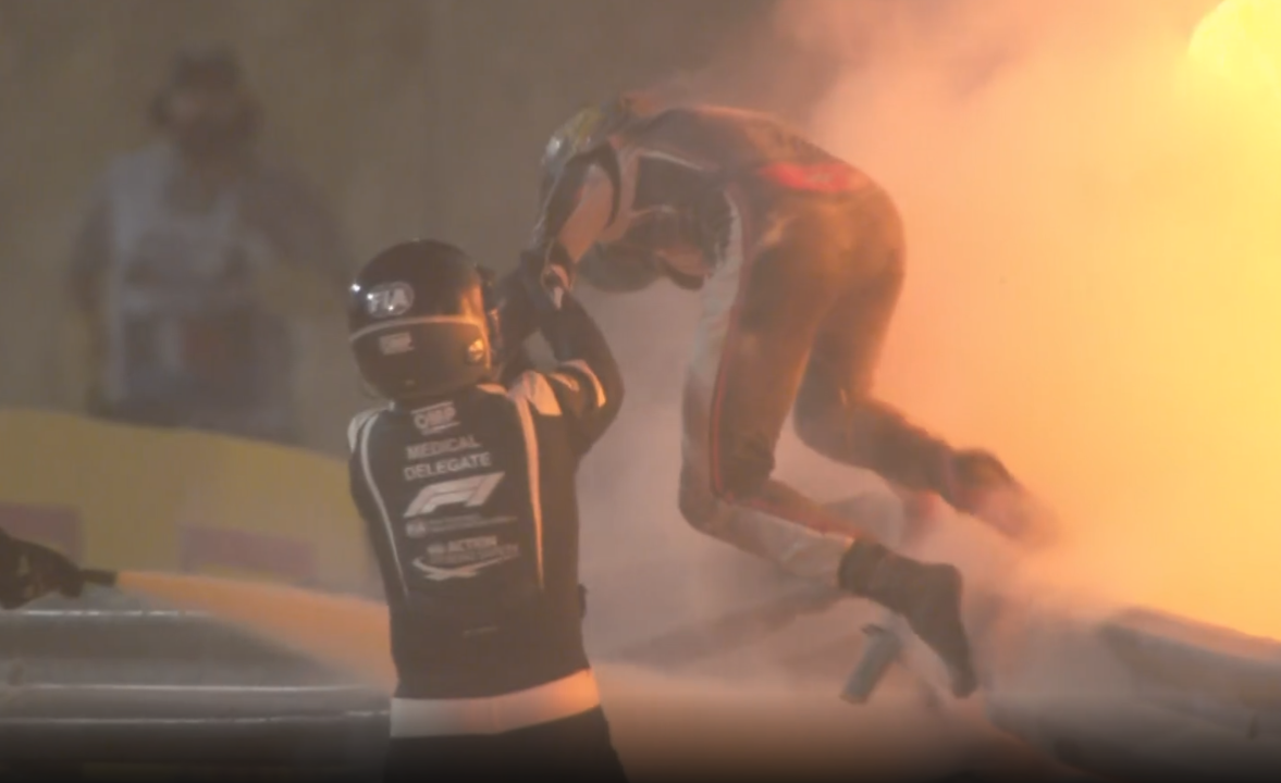 Medical crews were quickly on the scene and Grosjean was able to climb free from his car before being tended to initially in the medical car before walking, with assistance, to an ambulance.