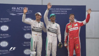 Sebastian Vettel launched a late attack to fall just .074s short, splitting the Mercedes drivers with Nico Rosberg third fastest.