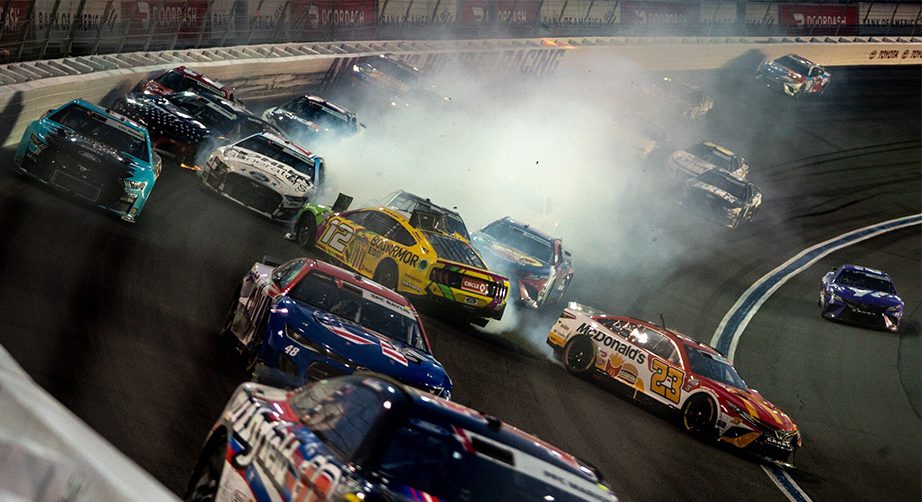 After Elliott’s spin, the field restarted with nine laps remaining in Stage 2, but on the restart, the ‘big one’ happened in Turns 1 and 2, collecting a total of 12 cars in the melee.