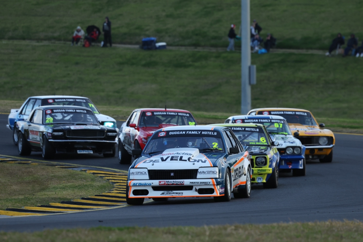 For nine of the 10 laps, the Holden Torana A9X driver trailed fastest qualifier Adam Garwood (Holden Commodore VB). He also had to ward off the challenge from Rylan Gray (Ford Capri) who in turn, had Jamie Tilley (Ford Mustang) immediately behind.