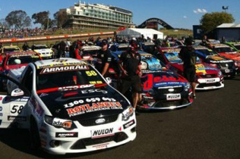 Bundaberg Racing’s Cameron McConville climbed from seventh position to finish third in Race 2, while his team-mates from Holden Racing Team watched on in pit lane.