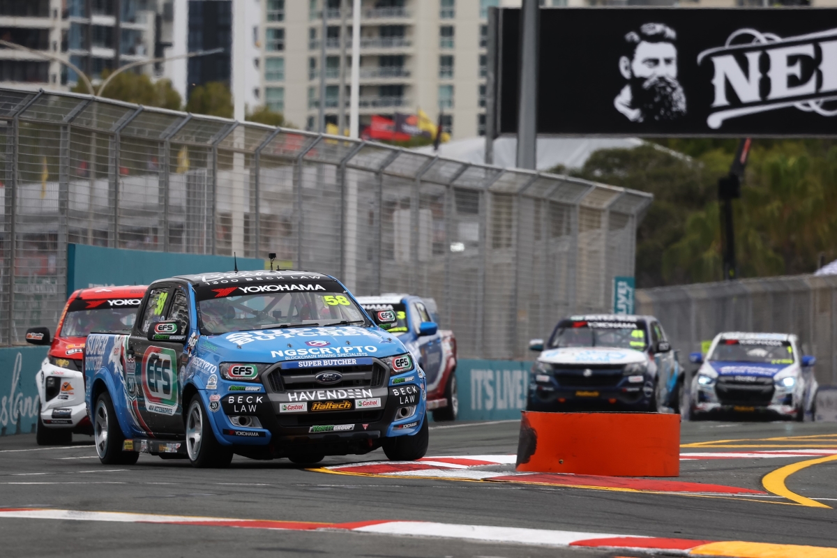 At the start of the first race, Harris (Ford Ranger) had to battled hard to grab the lead from Adam Marjoram (Mitsubishi Triton) as they rubbed panels. David Sieders (Mazda BT-50) settled into third which he held for the duration.