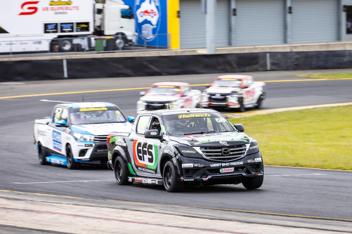 Ryal Harris has emerged victorious from an intense race-long scrap for the lead with Aaron Borg in the weekend’s opening race of the Haltech V8 SuperUte Series.