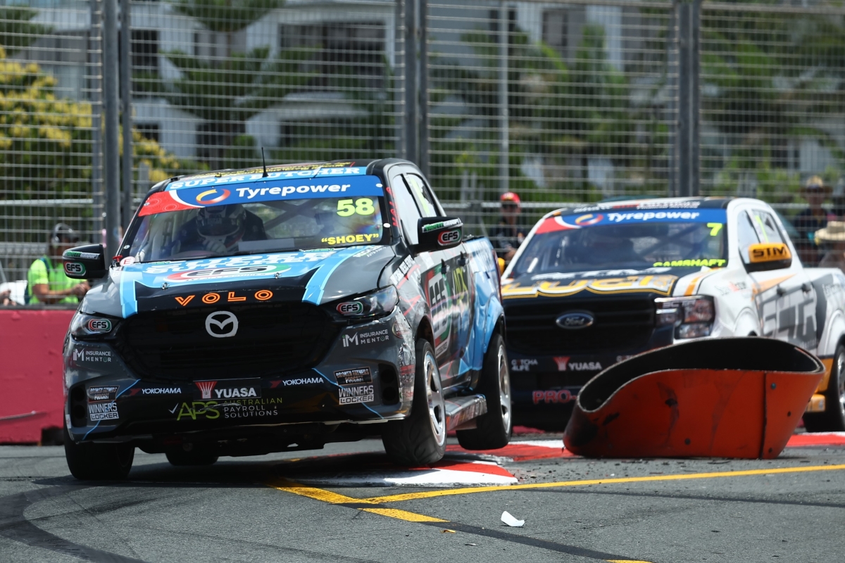 The race went green after four laps and a lap after Luke Webber (BT-50) had contact from Dave Casey (Triton) and spun. That incident briefly stopped Taylor and Richard Mork (Ranger).