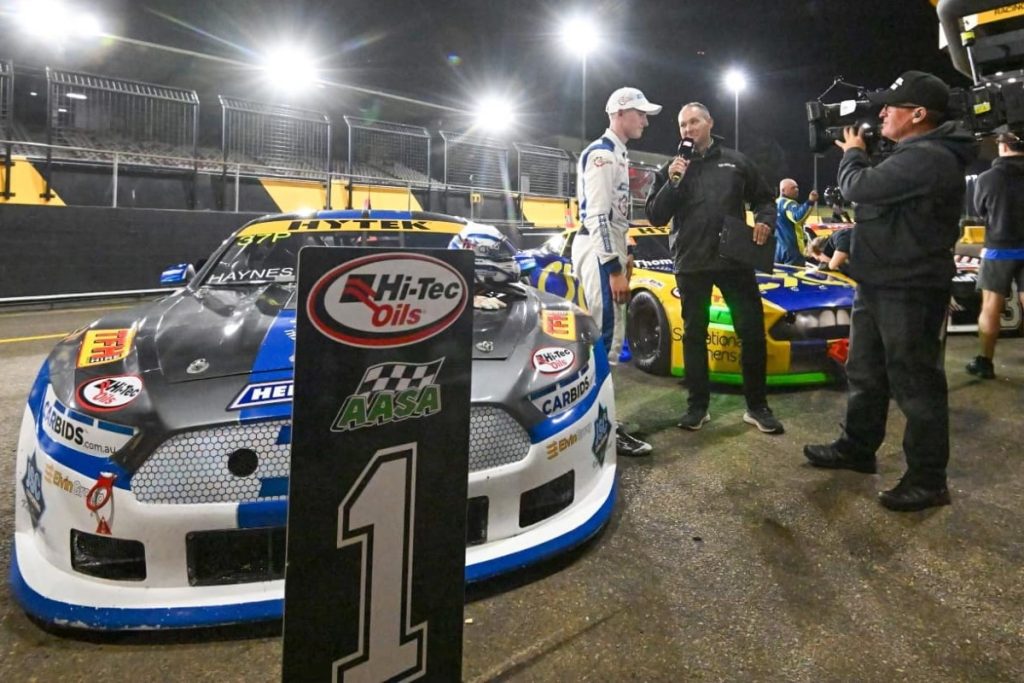After a lap behind the Safety Car, the race was stopped. Haynes was leading from Dylan Thomas and Cheney with the three topping the points. Then followed Coulter, Keam, Roberts, Tenkate, Paul Hadley (Camaro) and Domain Ramsey (Camaro).