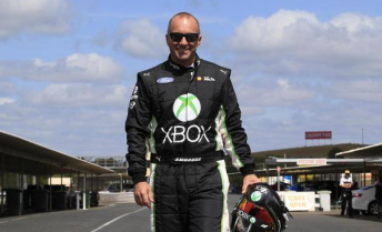 Marcos Ambrose is sweating it out during his first test with Dick Johnson Racing at Lakeside.