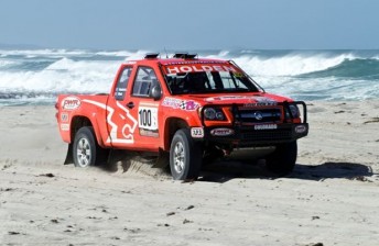 John Hederics in a Holden Colorado has won the opening leg of the Australasian Safari from Geraldton to Kalbarri in Western Australia.