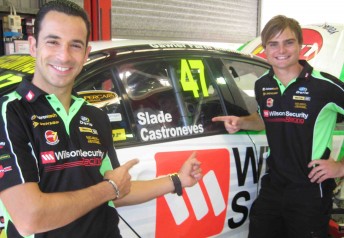 Castroneves, along with his family, reached Australian shores yesterday. At the Stone Brothers Racing workshop today, Castroneves got a seat fitting inside the #47 Wilson Security Racing Ford Falcon FG that he will share with Tim Slade.