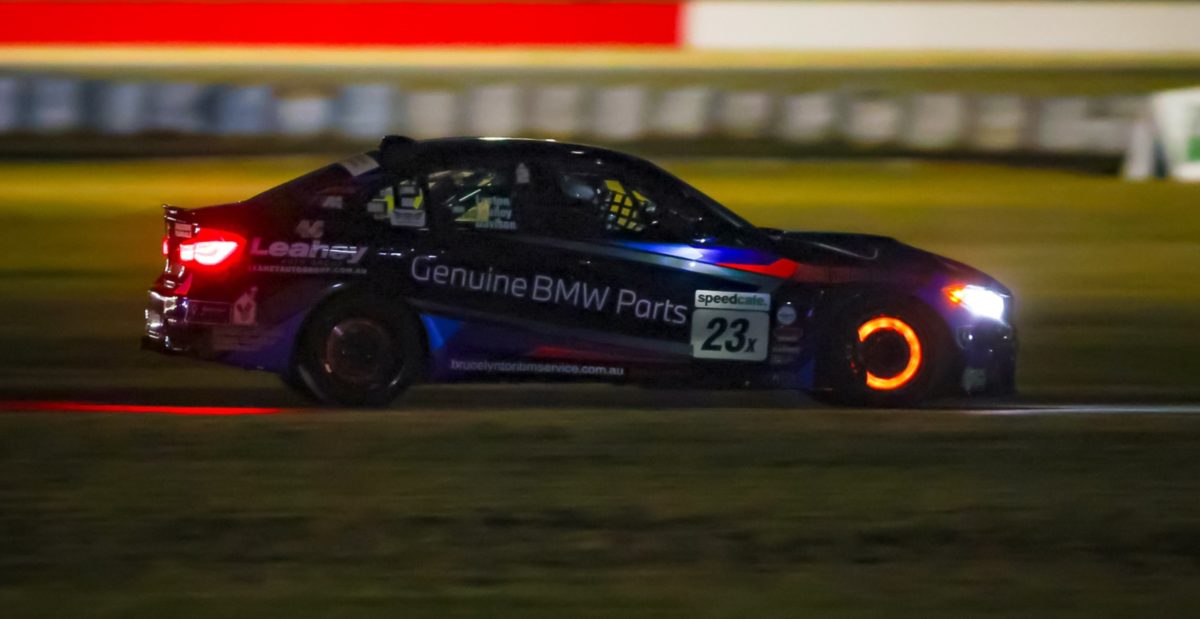 The Production Car category had to wait until nightfall for its two races at Queensland Raceway which included a compulsory pit stop.