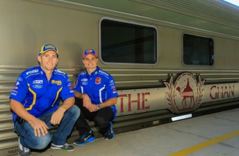 V8 Supercar drivers Lee Holdsworth and Tim Slade have begun a three-day train journey from Adelaide to Darwin ahead of next weekend’s Skycity Triple Crown at Hidden Valley.