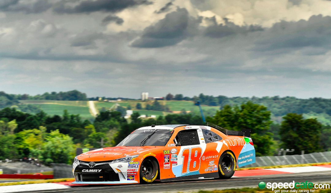 Tasmanian Owen Kelly unwinds the Joe Gibbs Racing Toyota in the Xfinity Series NASCAR race at Mid-Ohio before the heavens opened
