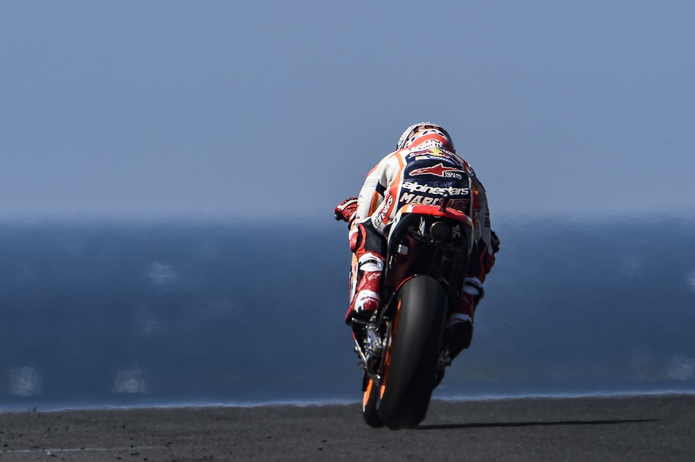Marc Marquez runs down Gardner straight during Friday practice at Phillip Island