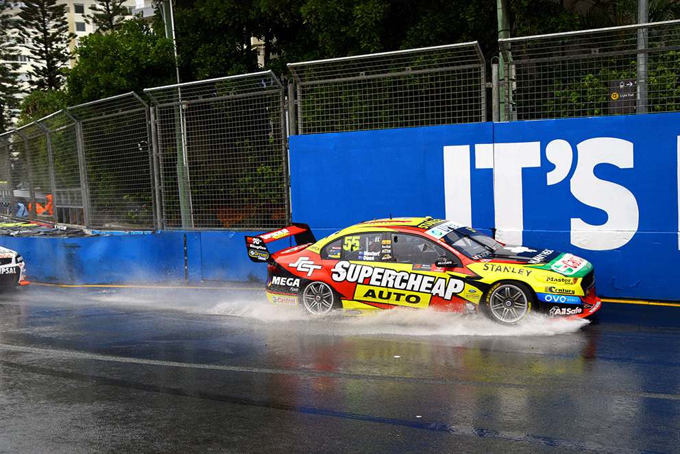 Chaz Mostert runs through the Front Chicane in the rain during Race 21