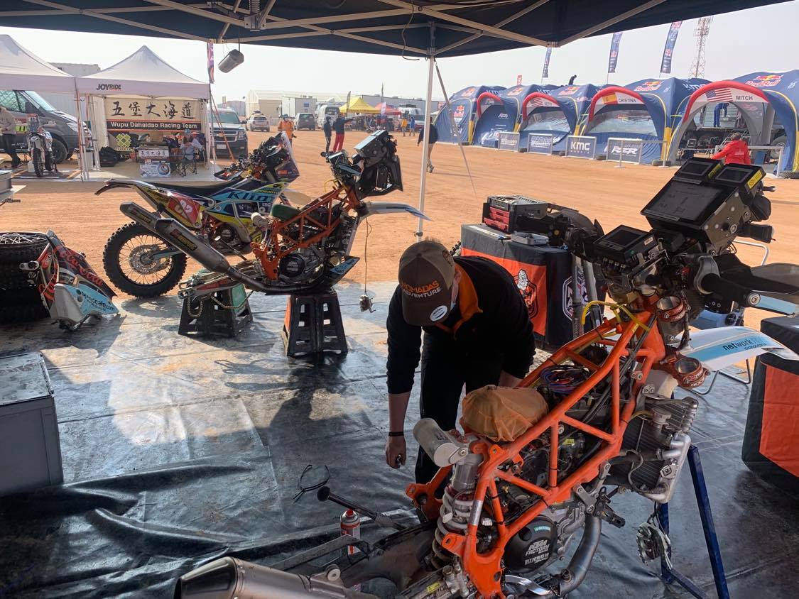 Tomorrow is the start of the marathon stage, and there’s no mechanical assistance for us tomorrow night, so it’s good to get all this work done on the bikes now.
