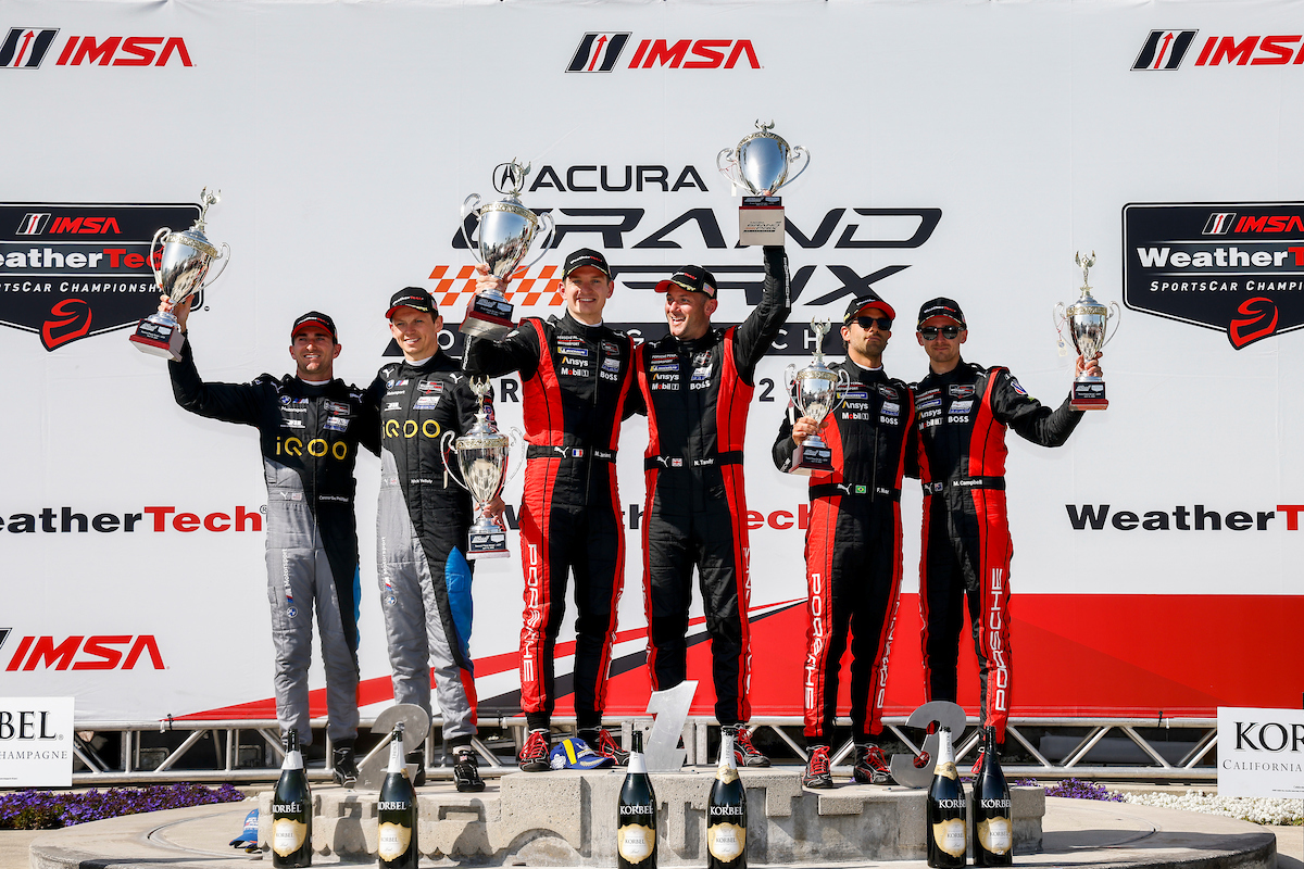 The #25 BMW of Connor De Phillippi/Nick Yelloly split the Porsches, Matt Campbell/Felipe Nasr making it a double podium for Porsche Penske Motorsport.