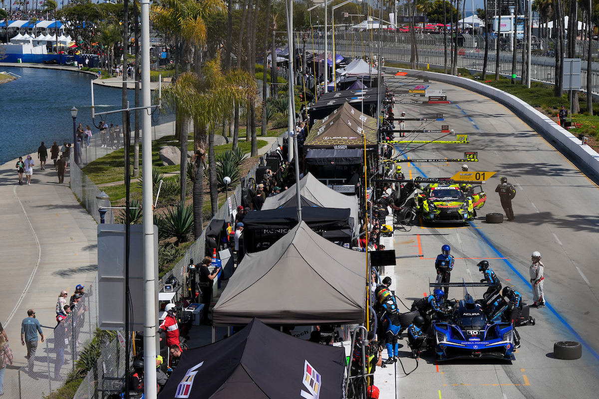 #10: Konica Minolta Acura ARX-06, Acura ARX-06, GTP: Ricky Taylor, Filipe Albuquerque, #14: Vasser Sullivan, Lexus RC F GT3, GTD PRO: Jack Hawksworth, Ben Barnicoat – pit stop.