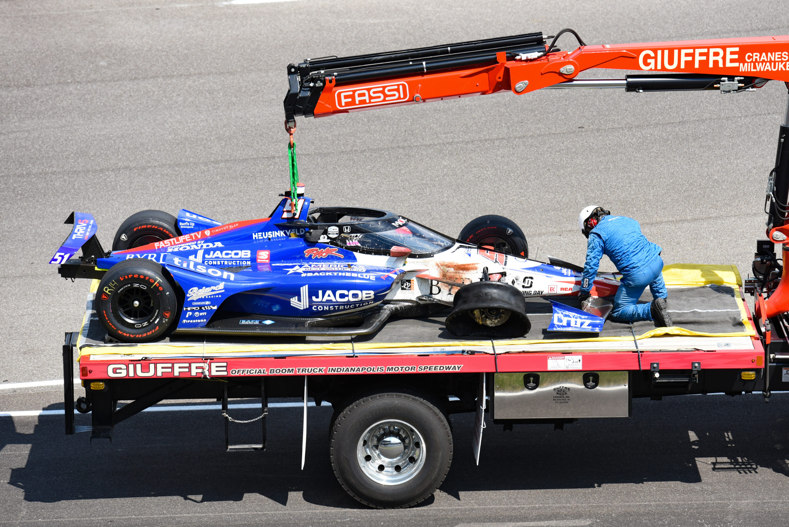 The aftermath of the right front on @JD33Davison’s No. 51 @Jacob_Companies @ByrdRacing @DaleCoyneRacing Honda.