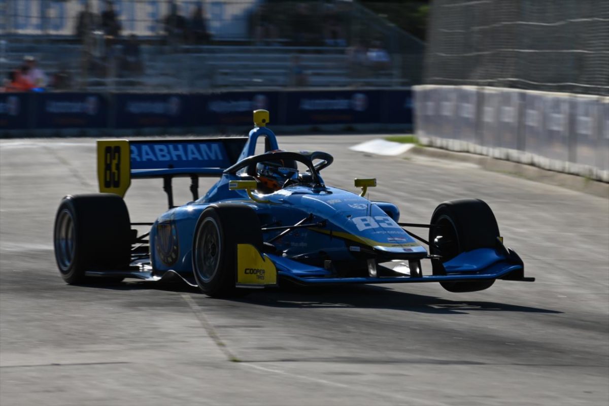 Matt Brabham and Hunter McElrea have each scored a podium in the Indy Lights double-header at Detroit.