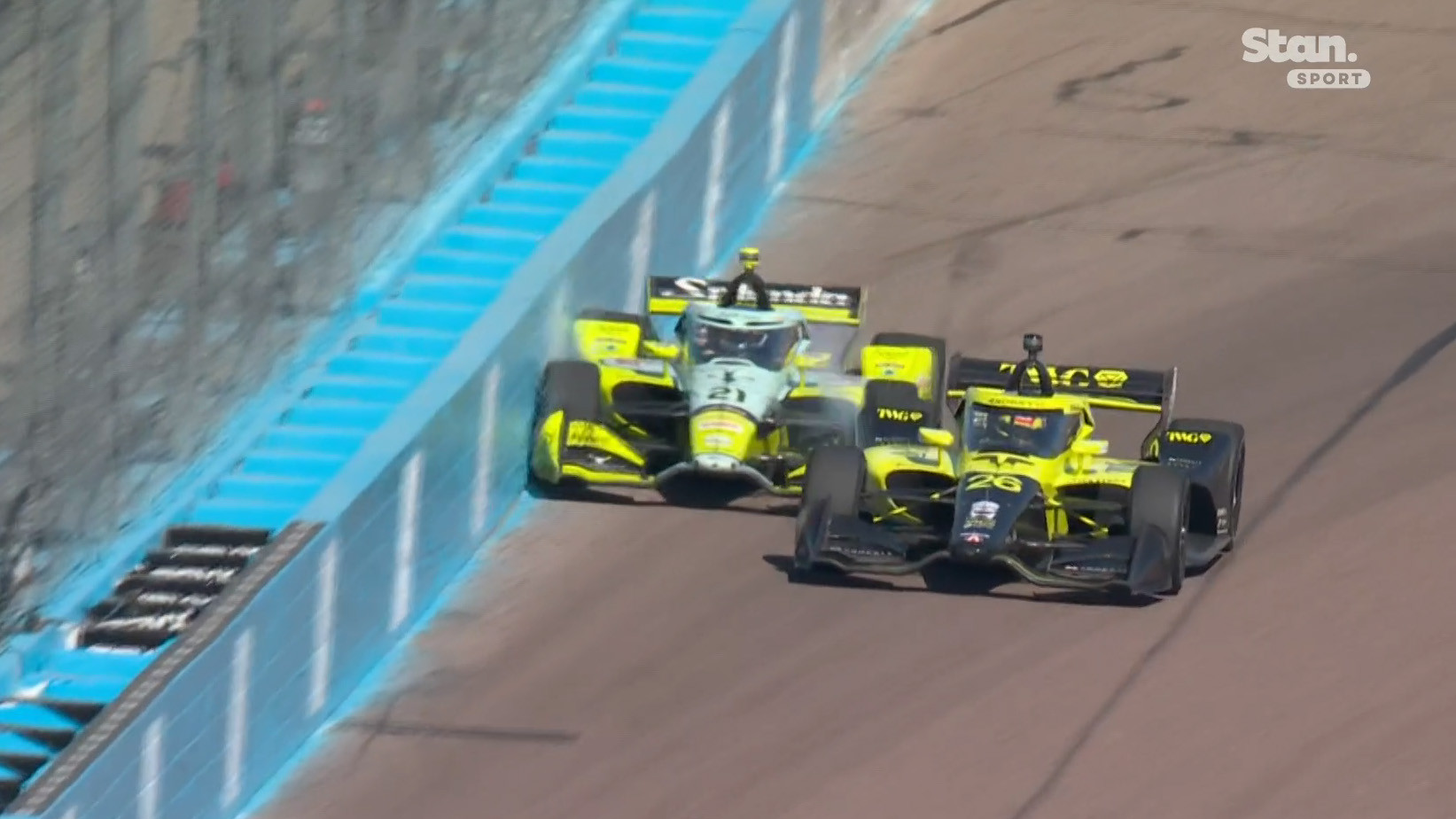 Contact between Will Power and Christian Rasmussen! Power has a flat. pic.twitter.com/O5z7XfC3m8