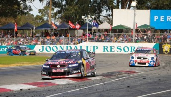 He then held Winterbottom – who also gained by pitting with Whincup – narrowly at bay for much of the race as the Red Bull Holden and Pepsi Max Ford proved evenly matched.