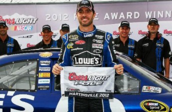 Jimmie Johnson will start Sunday’s Tums Fast Relief 500 at Martinsville from pole position after emerging fastest from a typically tight qualifying session at the Virginia short track.