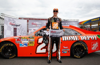 Logano set a time of 50.112s (179.598 mph), beating Carl Edwards for the top starting spot by 0.205s. Edwards (178.866 mph) will start second ahead of Paul Menard (178.582 mph), and Logano’s Joe Gibbs Racing team-mates Kyle Busch (178.575 mph) and Denny Hamlin (178.543 mph).