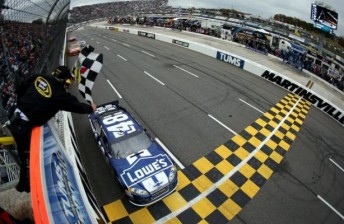 Johnson scored his fourth win of the season and seventh all-time at Martinsville after holding off a determined Kyle Busch in a five lap sprint to the flag.