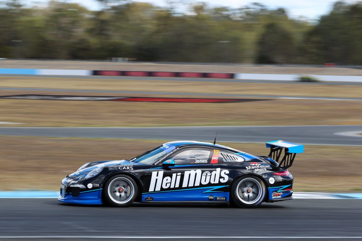 Harri Jones won a thrilling 200th Porsche Michelin GT3 Cup Challenge Australia race in Round 4 at Queensland Raceway after problems for early race leader Max Vidau.