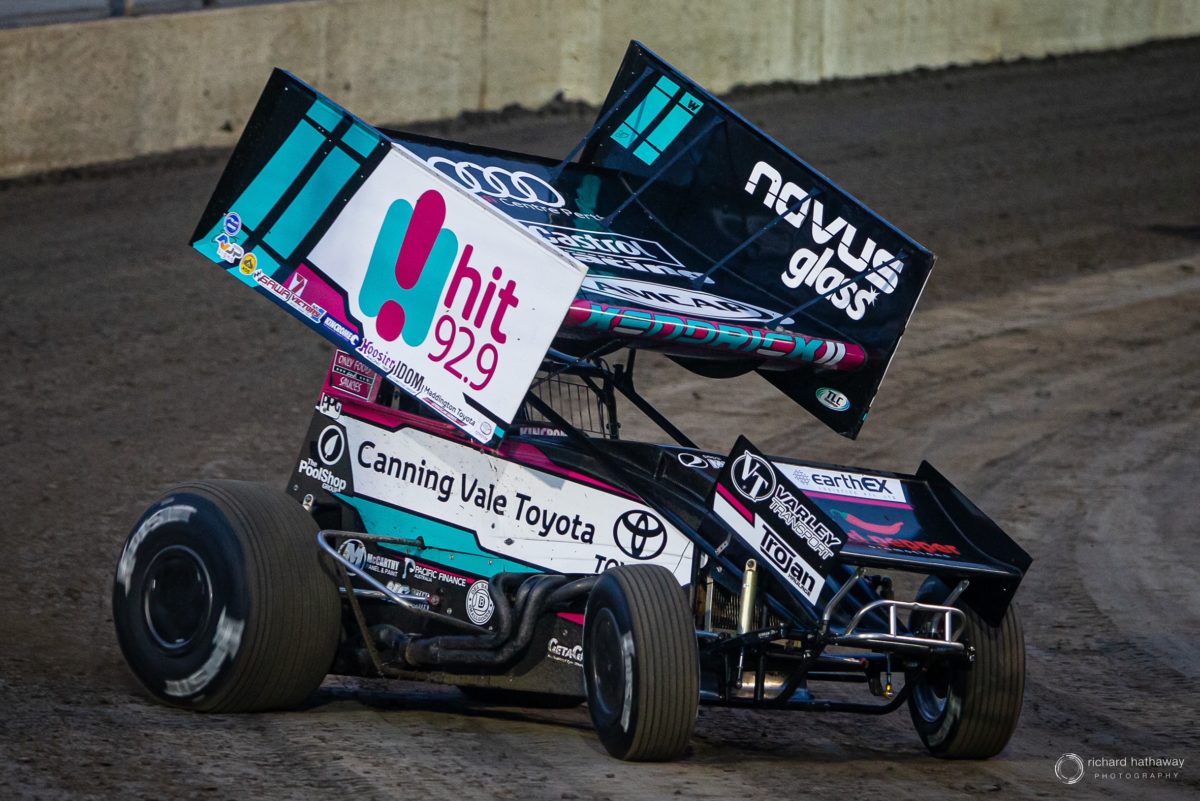 The son of enigmatic WA race engine builder and team owner Geoff took a while to get going in his Kendrick Racing entry, starting from the fourth row of the grid in the A-Main and fading back as far as ninth in the early part of the journey.