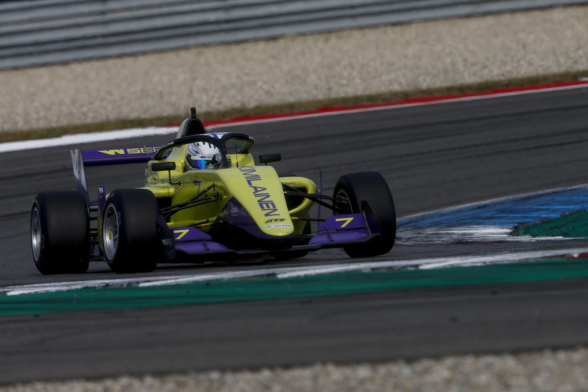 Getting the better start, Powell headed the field initially before a mistake at Turn 1 allowed Kimilainen to complete a move under brakes at Turn 2.