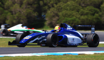 Goddard made a big lunge at the 2014 Australian Formula Ford series winner on Lap 9 but ran wide and dropped a position.