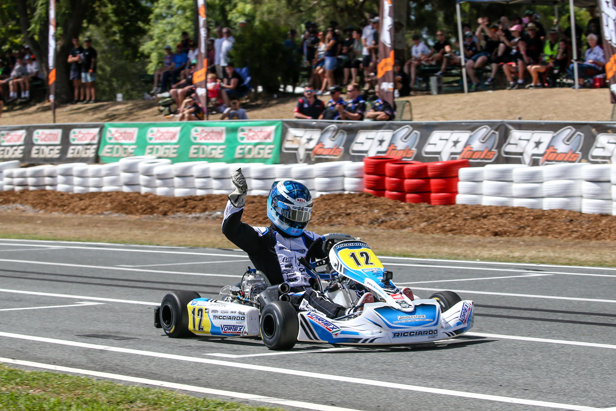 Other winners included Hugh Barter KA4 Junior, Brendan Nelson in TaG 125, while Brad Jenner was handed the win after a post-race investigation in X30. The Cadet 12 category was claimed by Carter Mobbs.