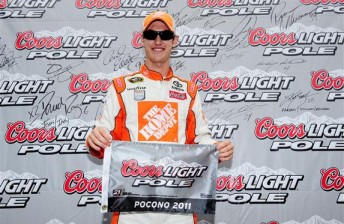 Joey Lagano has scored his third career NASCAR Sprint Cup pole position setting the benchmark at the Good Sam RV Insurance 500 at Pocono Raceway.