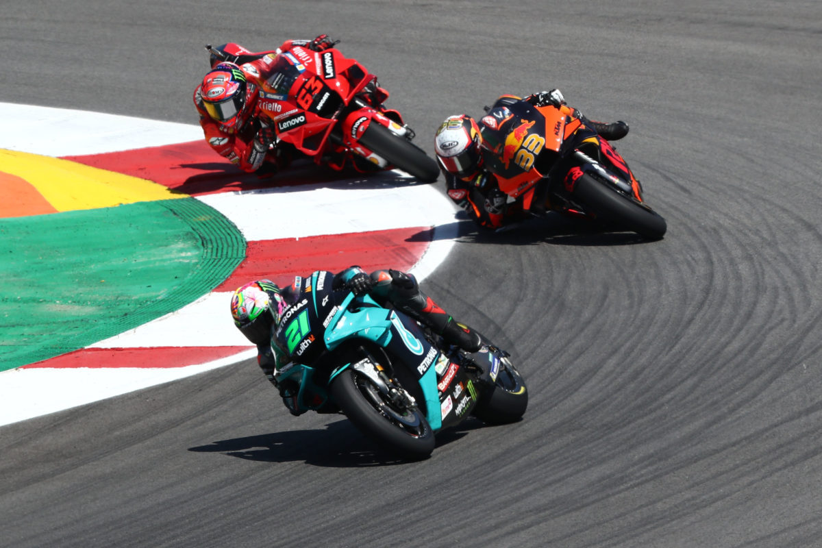 So far in 2021, the top step of the podium has been awash with Yamahas, courtesy of ts factory riders Maverick Viñales and Fabio Quartararo winning all three races this season on the current-spec M1.