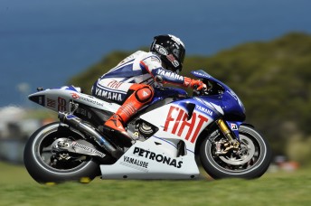 The Yamaha rider’s clashed with Nicky Hayden’s Ducati on the approach to the turn, with Lorenzo falling off, injuring a finger and his nose.