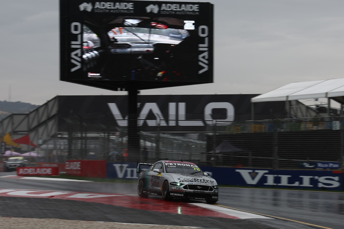 Throughout the second practice session for Dunlop Super2/3, it was Aaron Love in the Petronas Ford Mustang who was the pace-setter on the wet streets of the Vailo Adelaide 500.