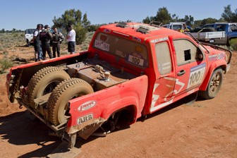 Leg 5 was a Marathon Day, which meant that no vehicle servicing was allowed by support crews. Any repairs to vehicles must be done by the competitors themselves with the tools they carry with them. Unfortunately Lowndes and Panozzo were unable to complete repairs.