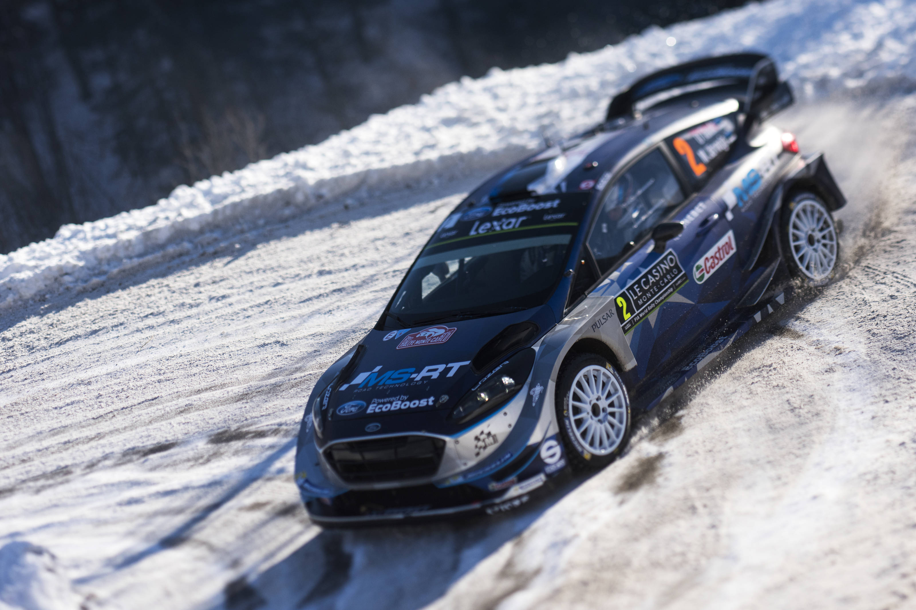09:24 – The number six Ford Fiesta RS WRC left the road 2.6 kilometres into SS3 and became submerged at the bottom of a five metre deep reservoir.