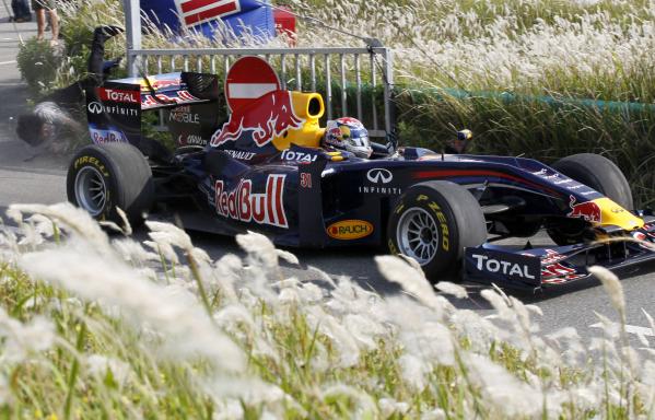 A man has been fortunate to walk away with next to no injuries after he was hit by SébastienBuemi in Red Bull’s demonstration Formula 1 car in Japan.