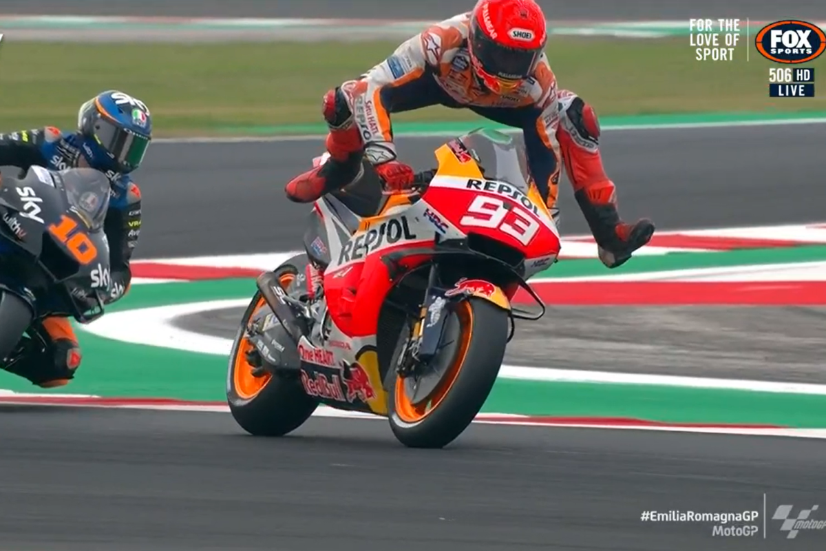 Mere mortals don’t save moments like this! 🤯@marcmarquez93 is no ordinary rider though!!! 💪#EmiliaRomagnaGP 🏁 pic.twitter.com/DxHaUU9yqN