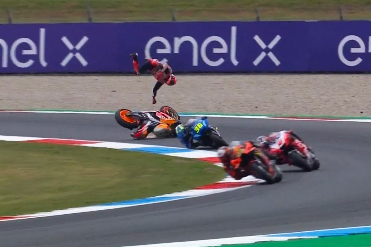Six-time MotoGP champion Marc Marquez has revealed the pain he’s riding with at the Dutch Grand Prix following a frightening incident in Friday practice.