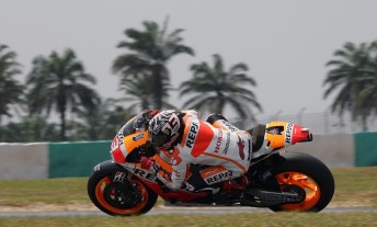 With Repsol Honda team-mate Dani Pedrosa in second, marginally ahead of Stefan Bradl (LCR Honda MotoGP) with Valentino Rossi fourth for Yamaha Factory Racing machine.