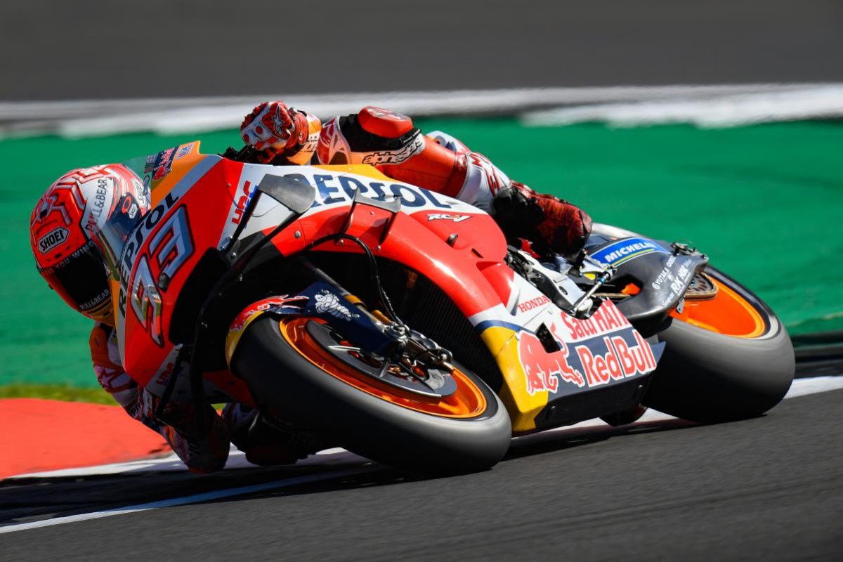 Marquez broke the all time MotoGP lap record at Silverstone, which was resurfaced earlier this year, with a 1:58.168s on the #93 Repsol Honda.