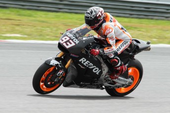 Marquez’s session best 2:02.262s just edged Yamaha’s Valentino Rossi by 0.118s with his team-mate Jorge Lorenzo in third a further tenth and half adrift.